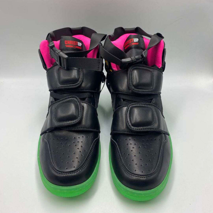 Only 1000 pairs available. Fits like a like a Dunk high top in regards to sizing. Has glow in the dark sole that says Son of God on bottom. 2 straps on upper. Mesh siding in mid behind logo