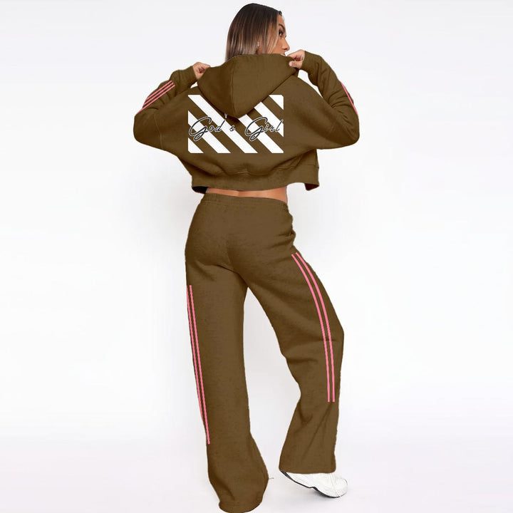 This God's Girl tracksuit is crafted from soft fleece fabric for warmth without bulk, making it an ideal choice for fall, winter, or early spring. The cropped hoodie features a drawstring hood and a stylish, slim fit, perfect with high-waisted pants featuring an elastic waistband and drawstring for an adjustable fit. This seamless blend of comfort and style makes it the perfect choice for casual wear, activewear, or everyday casual wear.